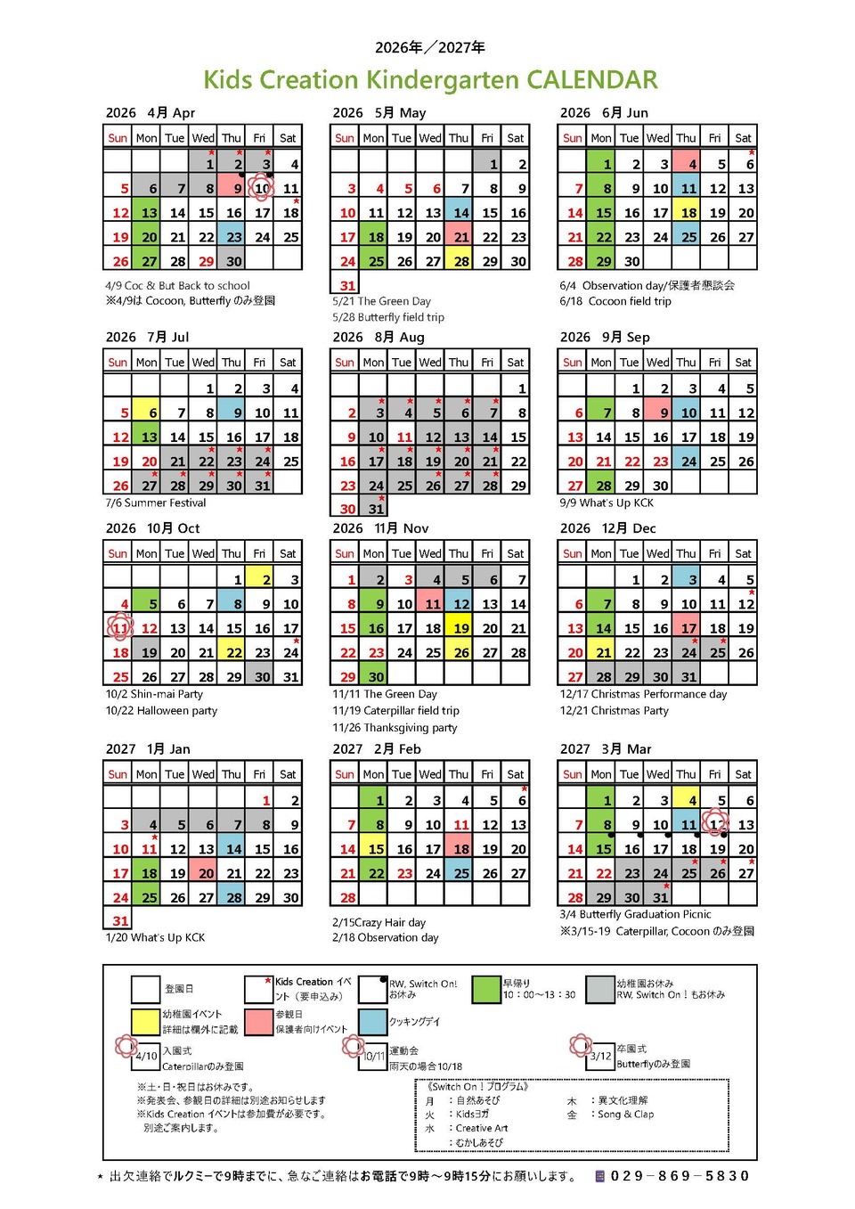 • 幼稚園カレンダー2026-2027NEW